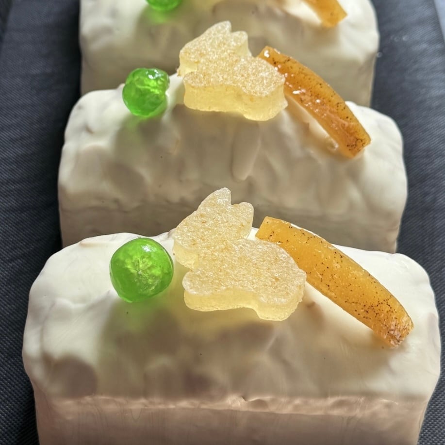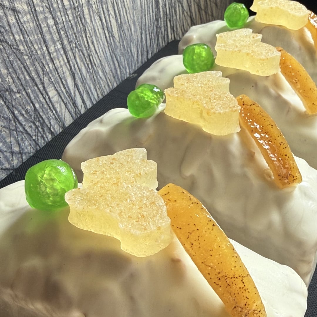 有機レモンを用いたフレッシュなケーキに、ホワイトチョコレートをくぐらせたやさしいバターケーキです。